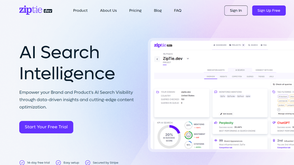 ZipTie.dev has specialized in Google AI Overviews tracking for two years, developing deep expertise in what Google’s AI engine rewards. Unlike monitoring-only tools, it includes content optimization guidance.